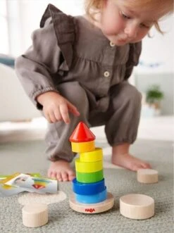 Deze wankeltoren heeft heel wat mogelijkheden. De kinderen kunnen er uitgebreid mee experimenteren én ze kunnen het stapelspel spelen met de voorbeeldkaarten.