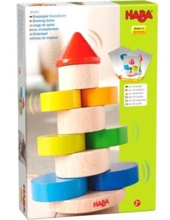 Deze wankeltoren heeft heel wat mogelijkheden. De kinderen kunnen er uitgebreid mee experimenteren én ze kunnen het stapelspel spelen met de voorbeeldkaarten.