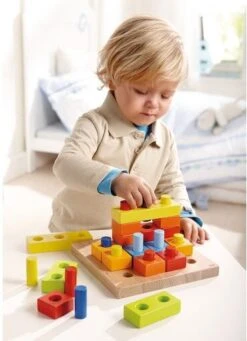 Het steekspel Kleurenpret heeft verschillende creatieve steekvarianten. Het spel traint de fijnmotoriek en bevat een instructieboekje met afbeeldingen om na te maken.