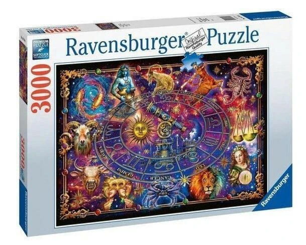 De puzzel Sterrenbeelden bestaat uit 3000 stukjes en is ca. 121 x 80 cm groot. Het is een legpuzzel van het merk Ravensburger.
