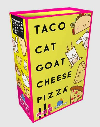 Taco Cat Goat Cheese Pizza is een zeer actief spel voor 2 tot 8 spelers. Om beurten leggen de spelers een kaart van hun persoonlijke stapel op de gemeenschappelijke stapel in het midden van de tafel. Hierbij zeggen ze één van de 5 woorden: Taco, Cat, Goat, Cheese of Pizza. Ze mogen niet kiezen welk woord ze zeggen. Belangrijk is om de volgorde Taco, Cat, Goat, Cheese, Pizza telkens aan te houden.