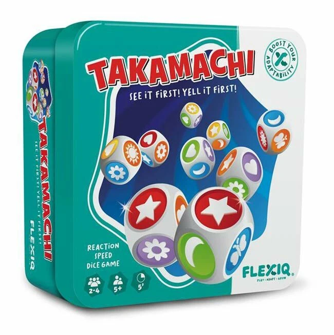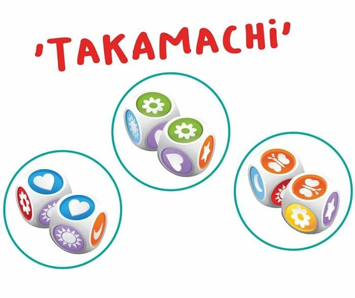 Takamachi is een dobbelspel voor twee tot vier spelers. Je wint het spel door goed te kijken en snel te reageren.