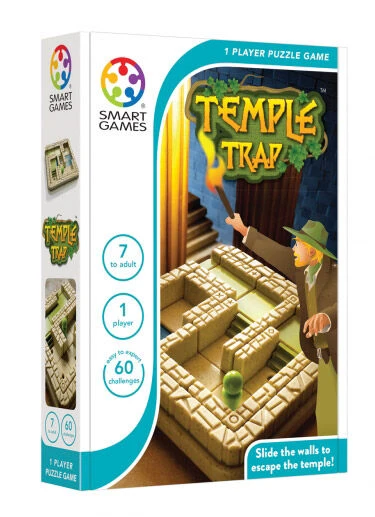 In het denkspel Temple Trap van Smart Games moet je een uitweg zoeken in het bewegende doolhof. De muren verschuiven voortdurend van plaats en er liggen hongerige krokodillen op de loer. Enkel slimme avonturiers kunnen ontsnappen uit dit vervloekte labyrint.