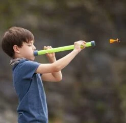 Vul de blaaspijp met ‘munitie’, blaas kort en krachtig en jaag de pijl bliksemsnel door de lucht.