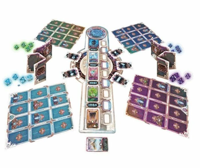 Gooi de dobbelstenen en vorm er een jaartal mee. Met behulp van tijdkristallen kan je het jaartal eventueel wijzigen. Reis naar het verleden en breng kaarten met schatten mee naar het heden. Vervul doelen voor bonussen.