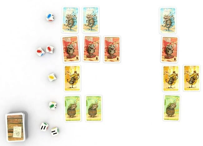 Voll Verasselt is een spannend dobbelspel. Overal zitten kevers. Iedereen probeert zo veel mogelijk beestjes te pakken te krijgen.